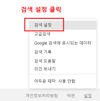 아래 링크로 들어가면 바로 검색 설정으로 들어갈 수 있습니다. 링크로 들어간 후 3.검색 설정 방법부터 진행하시면 됩니다.