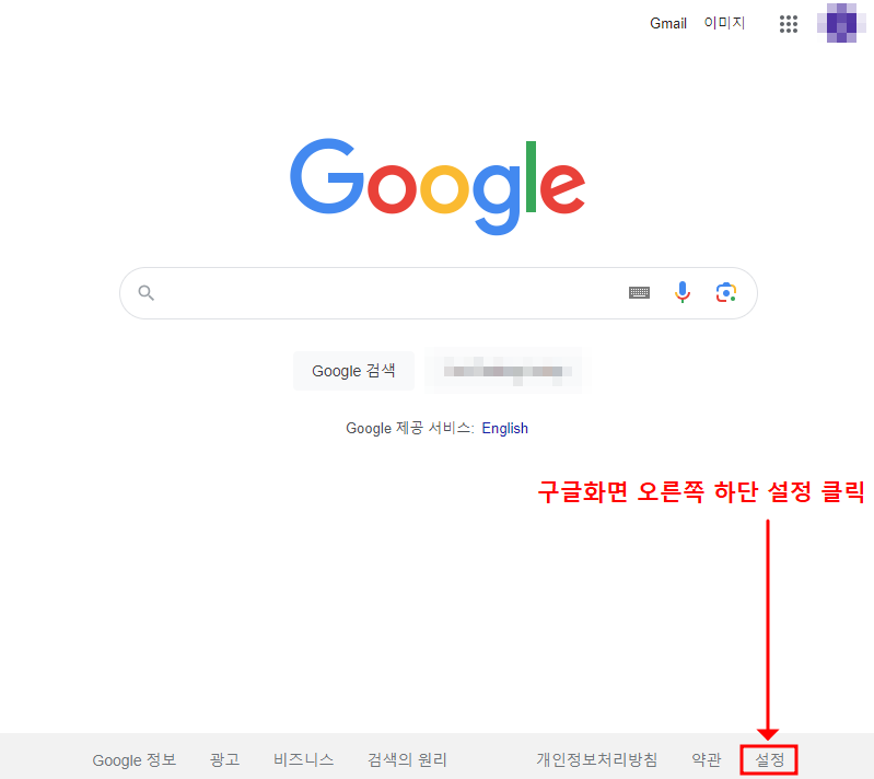 1. 구글 사이트 화면에서 오른쪽 하단 설정 클릭하기