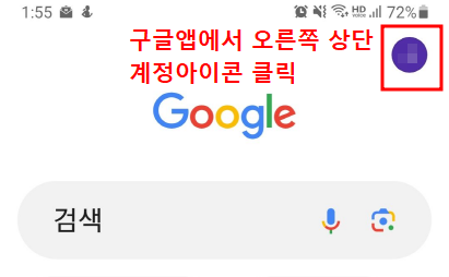 1. 구글앱 오른쪽 상단 계정 아이콘 클릭