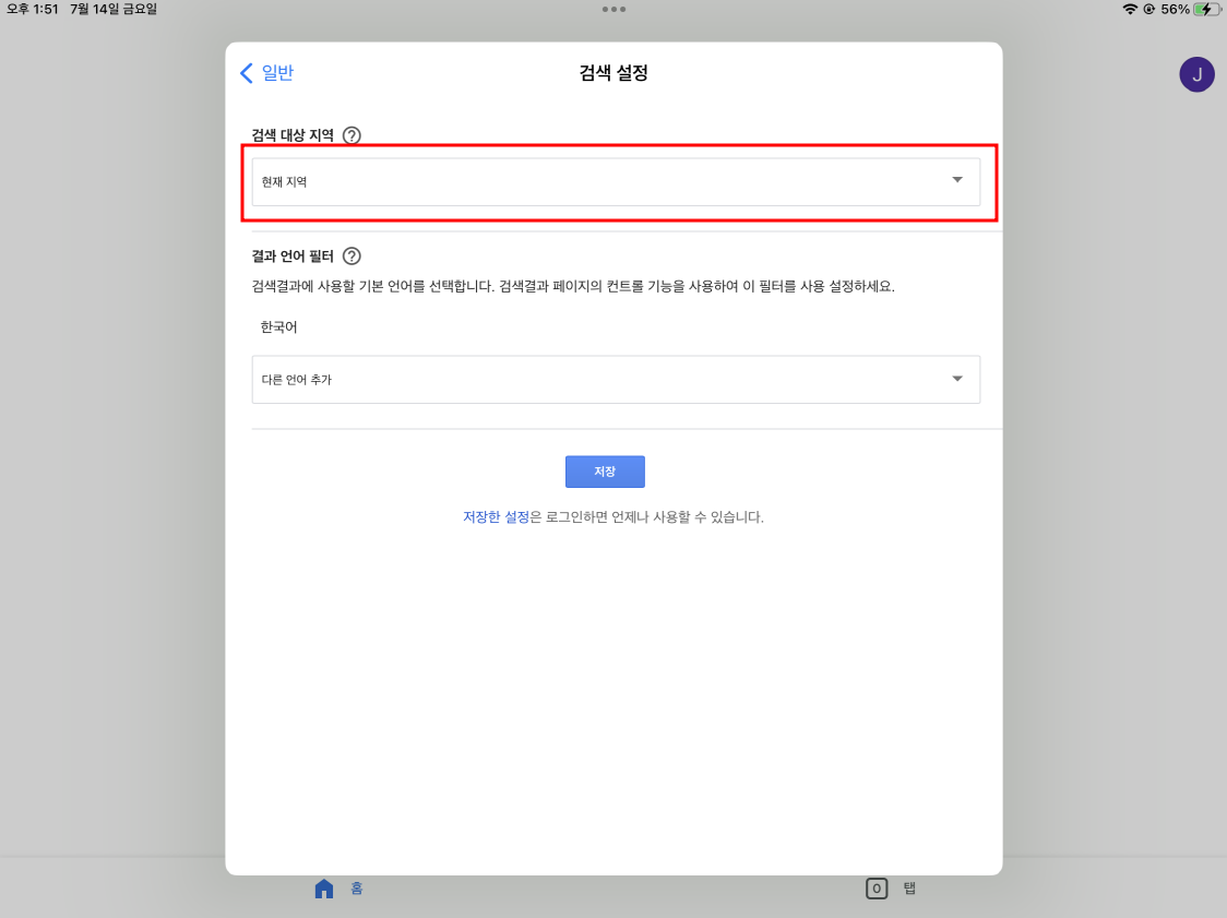 4. 지역 설정에서 원하는 국가 나라 선택하고 저장하기