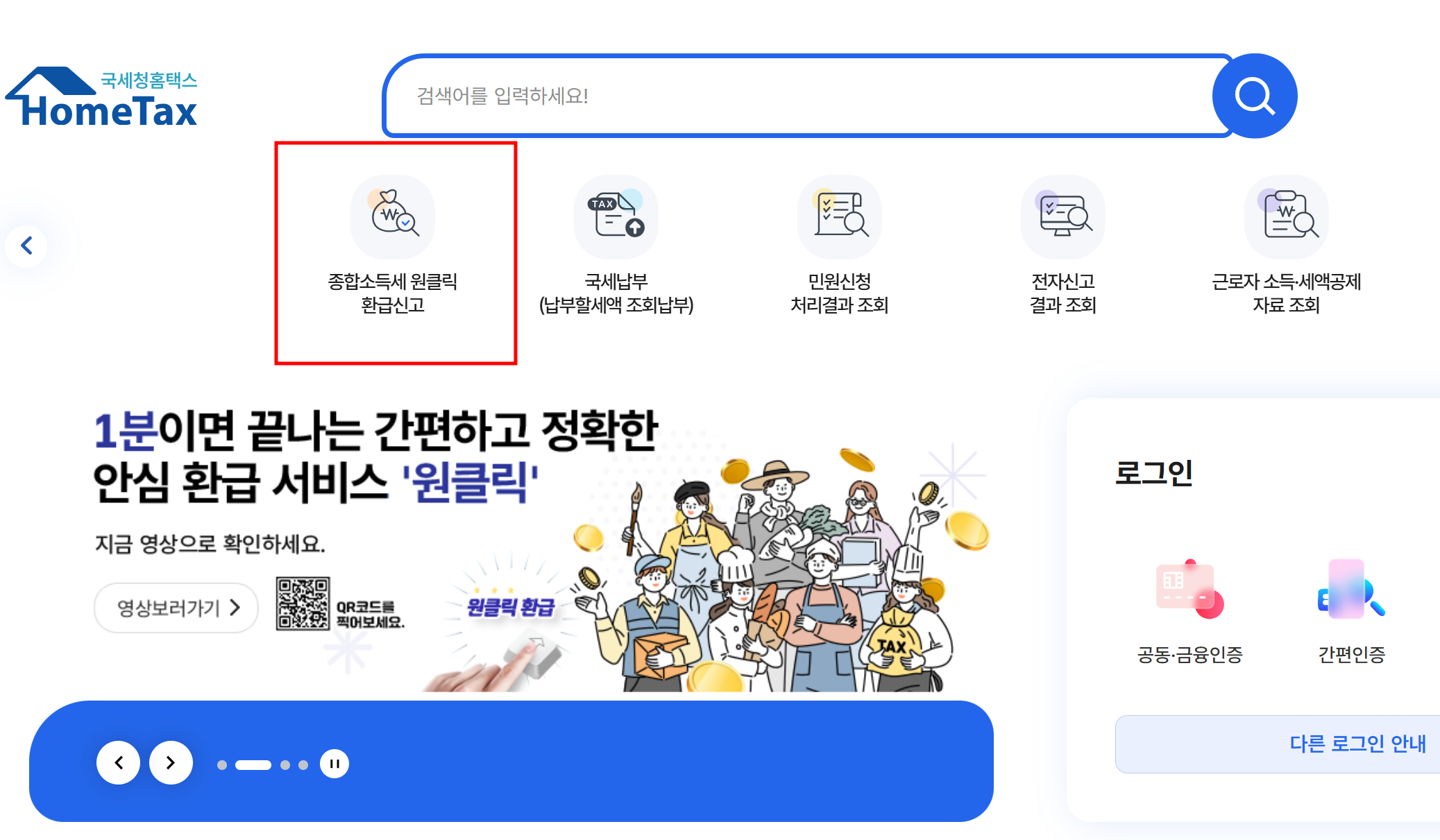 ② '종합소득세 원클릭 환급신고' 메뉴 접속