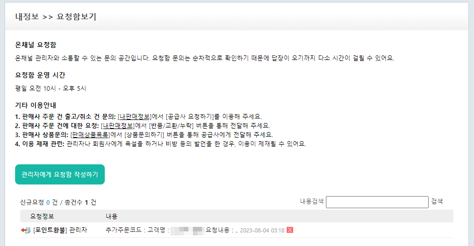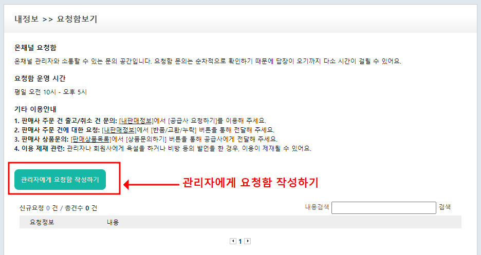 요청함보기 - 관리자에게 요청함 작성하기