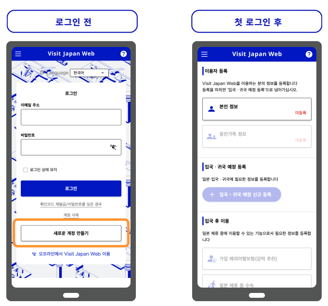 • 일본 입국 전 최소 72시간 전에 등록하는 것이 좋습니다.