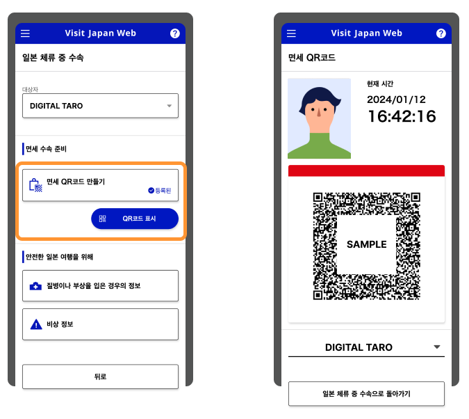 • QR코드 생성 후 일본 공항에서 별도의 종이 신고서 작성 불필요