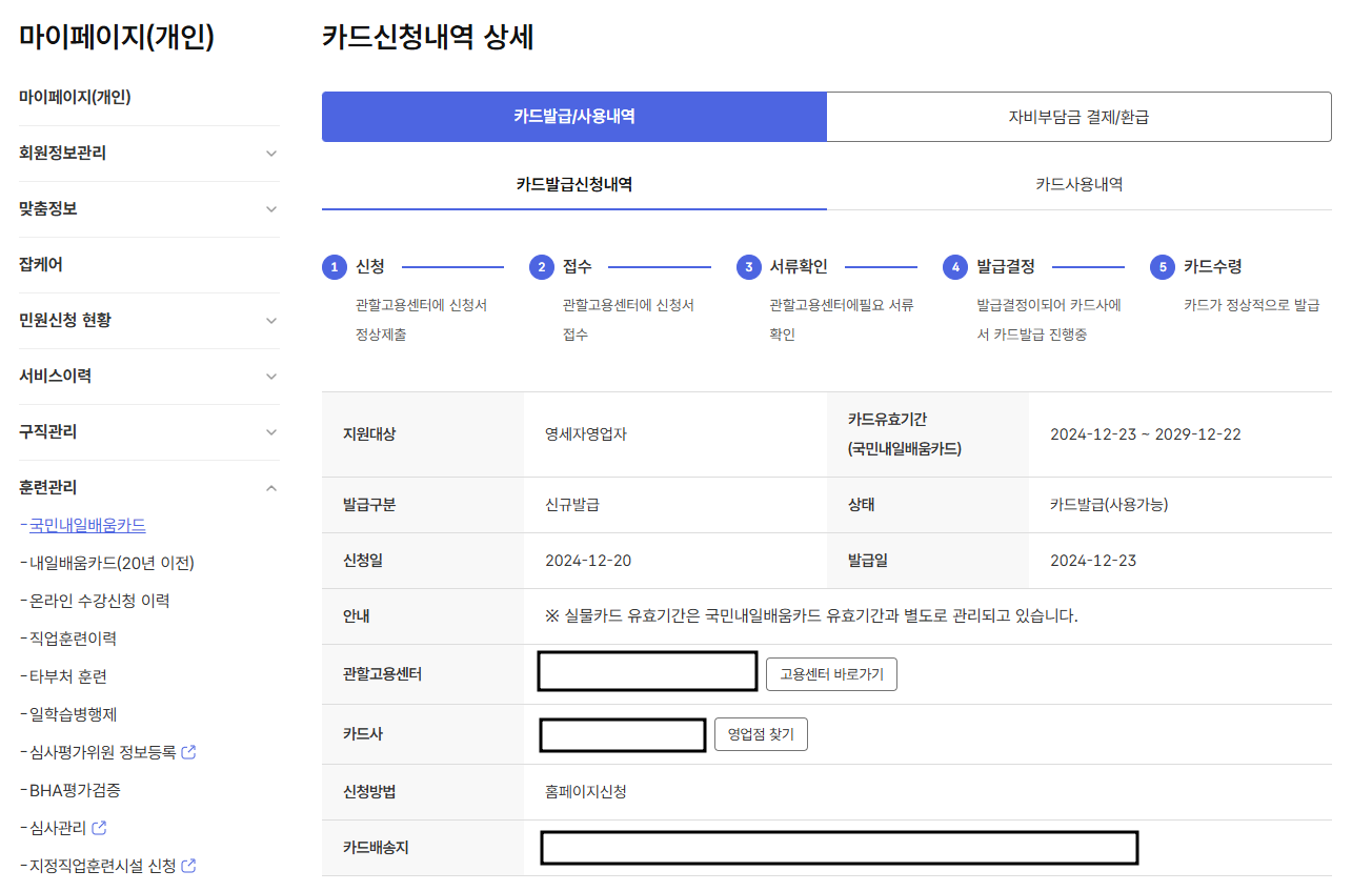 - 심사 후 카드 발급: 자격 심사 후 카드가 발급되며, 본인 부담금(과정별 차등 적용)이 부과될 수 있음