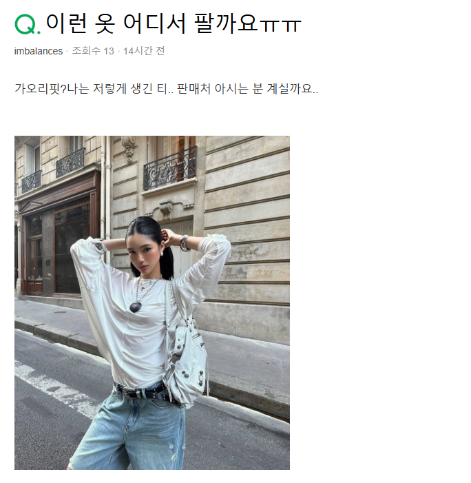 아래 질문은 가오리핏 티셔츠를 찾고 있다는 글이고, 쉽게 판매처를 찾을 수 있었습니다.