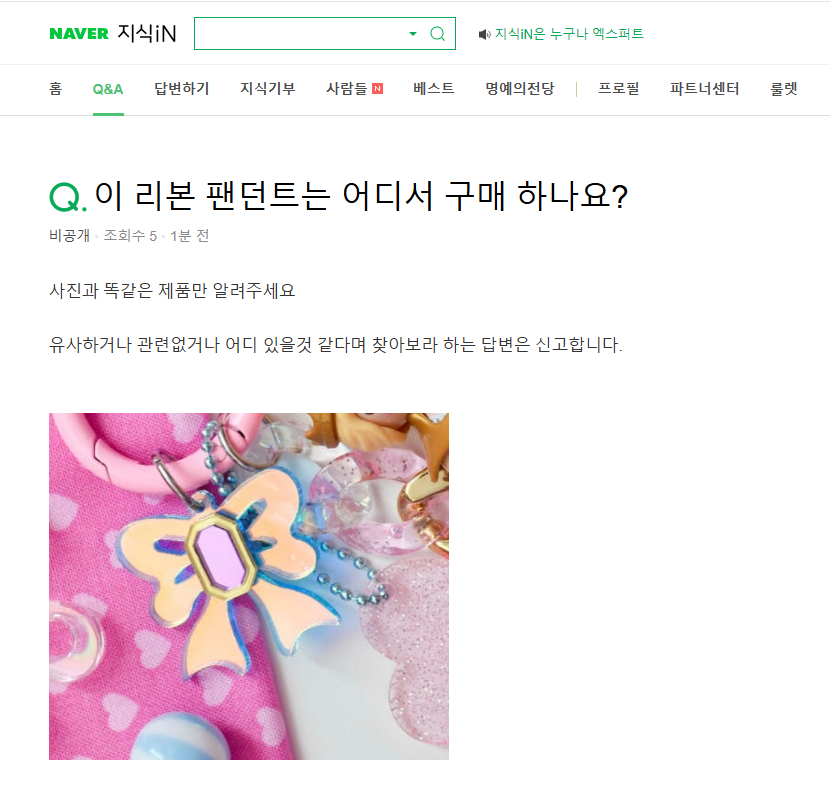 아래 글은 키링에 다는 악세사리를 찾는 질문의 글입니다.