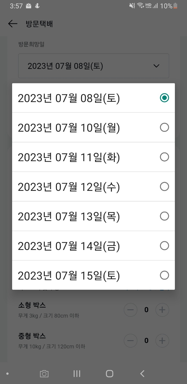 신청할때 주소도 입력하고 방문희망일도 설정할 수 있는데.. 이해할 수 없는 상황이었지만, 고객이 나이가 있어서 편의점택배도 이용못하시고 하실 수 있는게 거의 없으셔서.. 화요일에 수거, 수요일에 받는 것으로 생각하고 넘어갔습니다.
