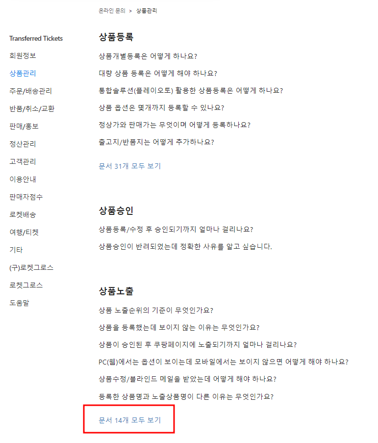 3. 상품노출 -하단 문서 14개 모두보기 클릭