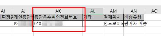 엑셀을 보다가 기존에 못봤던 항목이 있어서 봤더니 통관용수취인전화번호가 있었다.