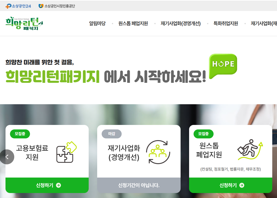 소상공인을 위한 정부 지원 사업은 다양하지만, 그중에서도 ‘희망리턴패키지’는 실제 폐업을 겪었거나 폐업을 앞둔 소상공인들에게 꼭 필요한 제도입니다. 단순한 자금 지원이 아닌, 폐업 부담을 줄이고, 재취업과 재창업을 돕는 종합 재기 지원 시스템으로 많은 소상공인들이 다시 일어설 수 있도록 도와주고 있습니다.