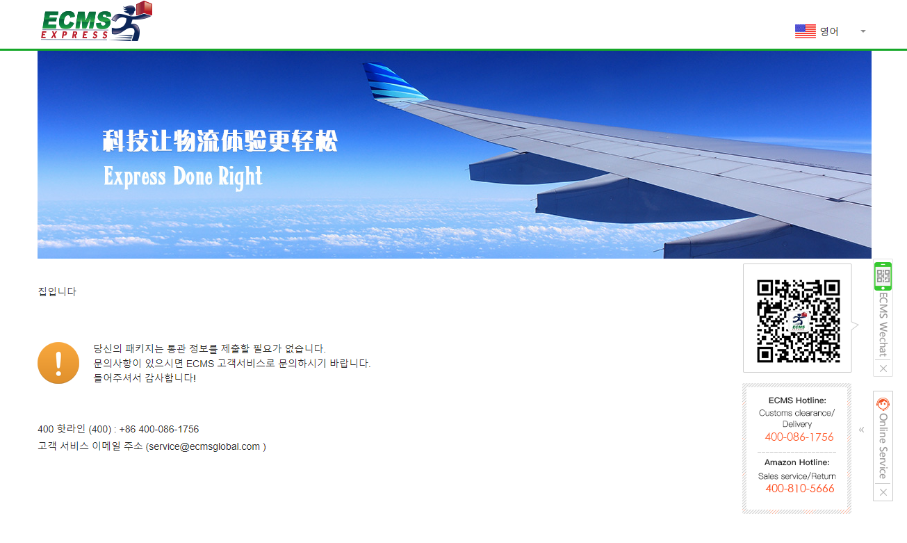 당신의 패키지는 통관 정보를 제출할 필요가 없습니다.