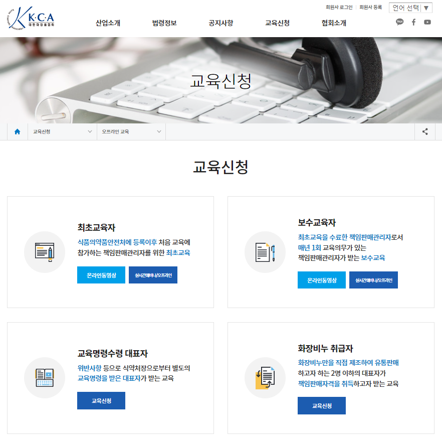 2023년 올해부터는 온라인동영상 교육이 추가되어 자유로운 시간에 화장품 책임판매관리자 교육을 들을 수 있게 되었습니다.