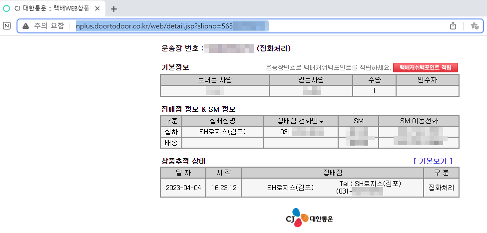 [CJ대한통훈 배송조회 링크]