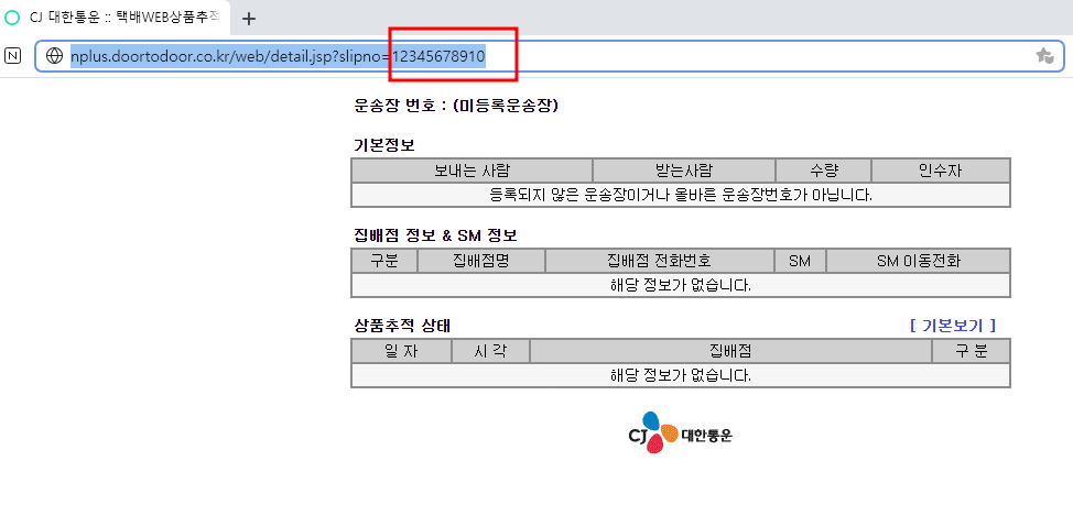 등록되지 않은 운송장이거나 올바른 운송장번호가 아닙니다.